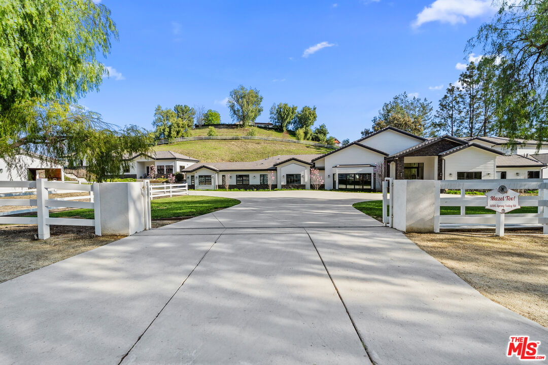 Welcome to 6006 Spring Valley Rd, an extraordinary modern ranch estate in the prestigious guard-gated community of Hidden Hills. Built in 2021 on 2.1 acres, this residence blends luxury, privacy, and sophistication. The 7,903 sq ft main home offers 7 beds and 9 baths with soaring ceilings, glass chandeliers, and seamless indoor-outdoor living. A gourmet chef's kitchen boasts dual islands, custom cabinetry, Miele appliances, double ovens, twin ranges, dual fridges, built-in coffee machine, and double dishwashers. A retractable glass wall opens to a resort-style pool, spa, outdoor kitchen, and expansive lawn.The first-floor primary suite features two walk-ins and a spa-inspired bath with heated floors and double shower. Upstairs, a lounge/game room and two bedrooms open to a scenic balcony. Each bedroom includes an en-suite. The property also includes a 1,200 sq ft 2 bed/2 bath guest house with full kitchen, a 3-stall barn with tack room, a basketball court, and a 750 sq ft standalone gym with bath. The main home also features a private theater.Hidden Hills amenities include a clubhouse, pool, pickleball and basketball courts, and movie theater for residents. A rare offering combining modern design, estate scale, and premier community living all at a highly competitive price.
